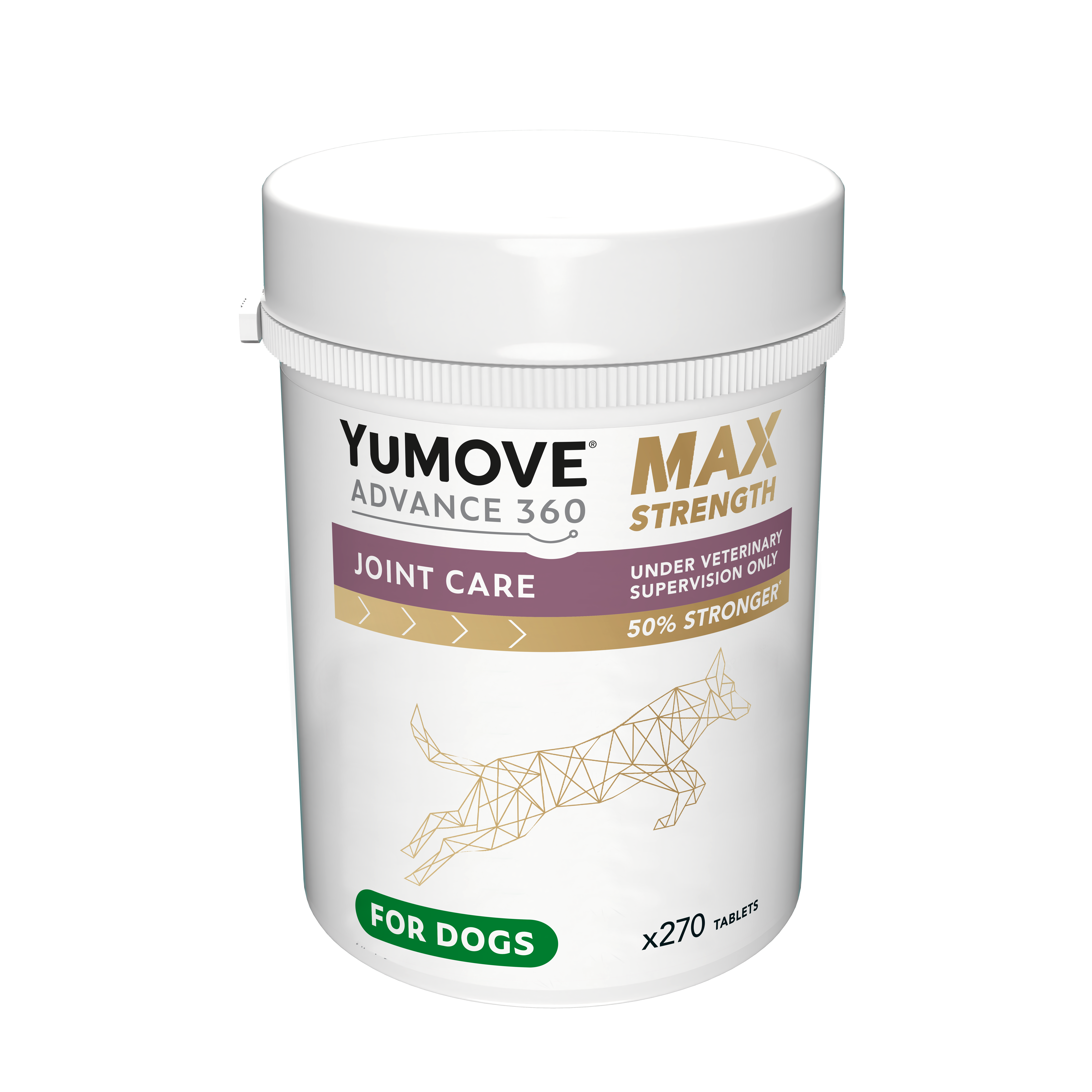 Осигурява 50% повече биологична активност* за кучета, под ветеринарен контрол, които може да имат нужда от допълнителна подкрепа. С 50% по-силна формула* от стандартния YuMOVE ADVANCE 360, нашата клинично доказана¹ Max Strength формула комбинира уникалния ни нов ActivEase Complex и 20% повече рибено масло³, за да подпомогне естествения противовъзпалителен отговор на вашето куче.